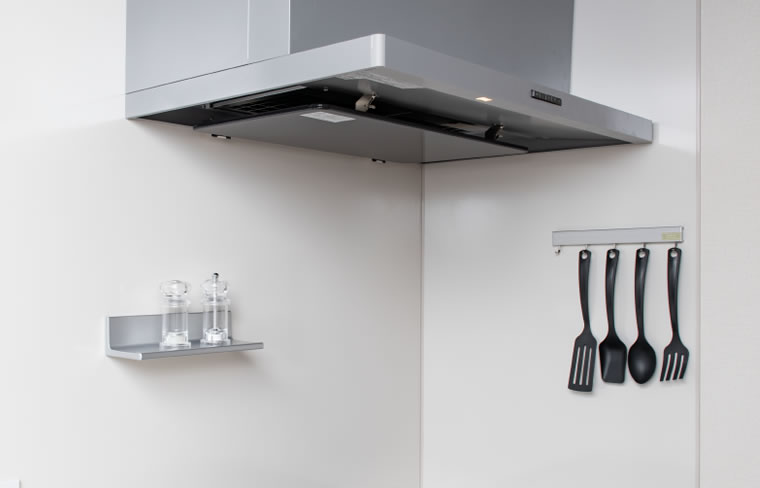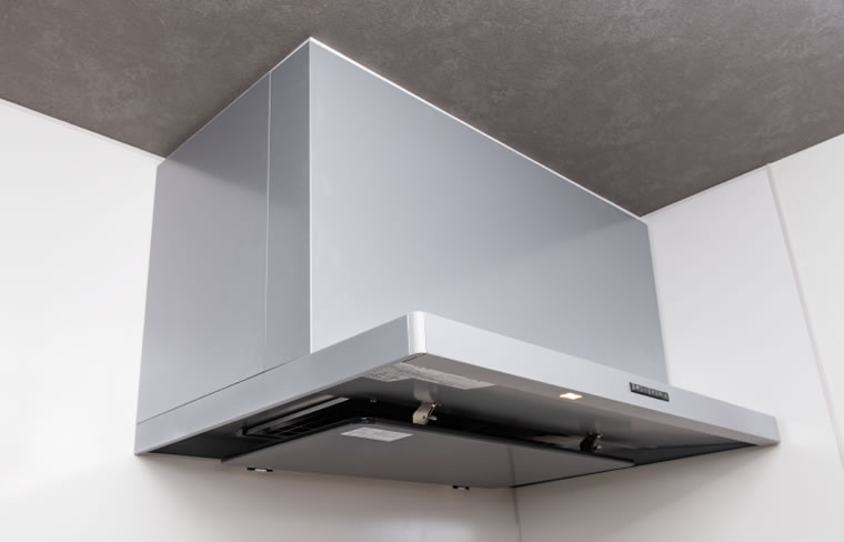 パワフルに煙や熱を吸引・排出するシロッコファン型のレンジフード。整流板はお手入れがスムーズな高品位のホーロー製です。