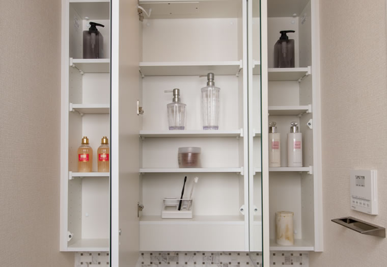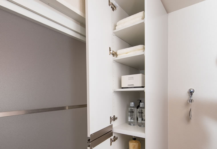タオル類や小物などを整理できる収納を設置。すっきりと整理された美しい洗面室を演出します。※タイプにより仕様が異なります。
