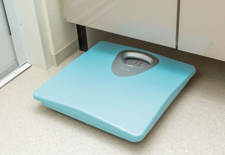 洗面化粧台の下部にヘルスメーターが収納できるスペースを確保しています。※ヘルスメーターのサイズには制限があります。
