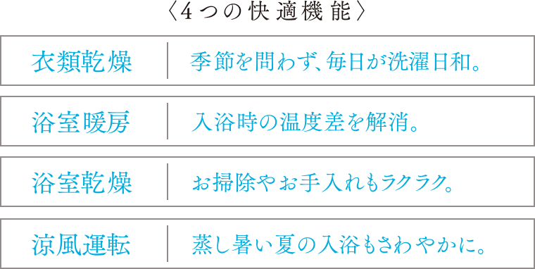 衣類・浴室乾燥、浴室暖房、換気、涼風機能がついた浴室暖房乾燥機です。