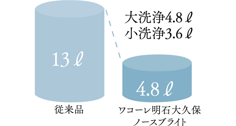 環境にやさしく、しかも経済的。洗浄使用量は大4.8ℓ/小3.6ℓと従来品に比べ約70%の節水を実現。水道料金を節約できます。