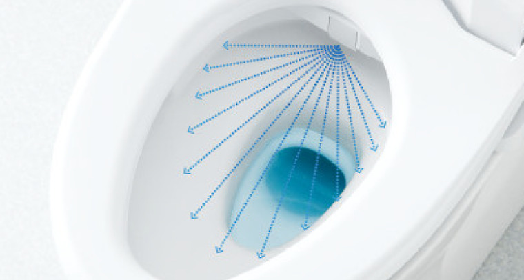 自動で便器にミスト(水)をふきつけて、汚れを付きにくく落ちやすくする技術です。