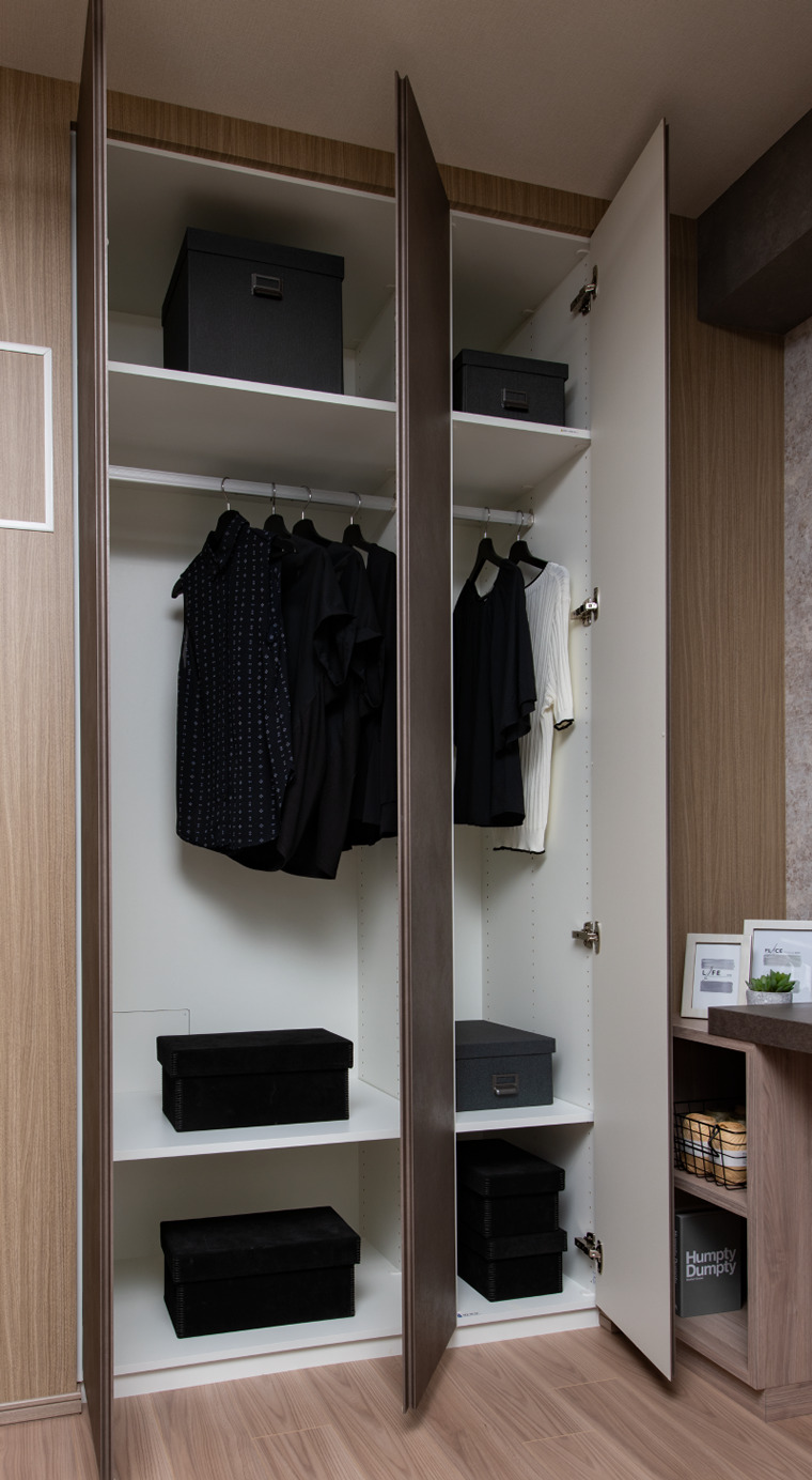 身のまわりのアイテムがすっきりと収納できる機能的なクロゼットです。※タイプ・居室により仕様が異なります。