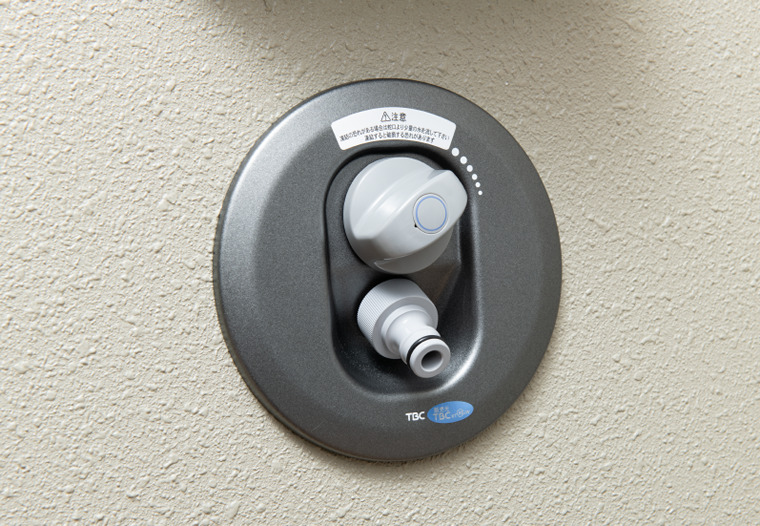 様々なライフシーンに便利な差込式水栓をバルコニーに設置しています。