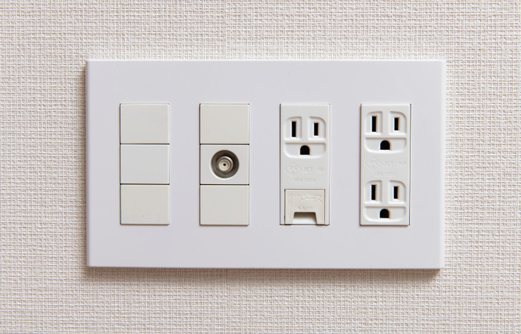 電気コンセントに加え、テレビ、電話、インターネット接続用のブランクチップを一体化したコンセントを採用しています。※居室により仕様が異なります。