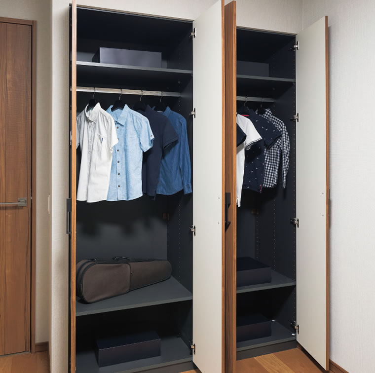 季節用品やワードローブなど多彩な生活アイテムをたっぷり整理できる大容量のウォークインクロゼットを設けています。※タイプ・居室により仕様が異なります。