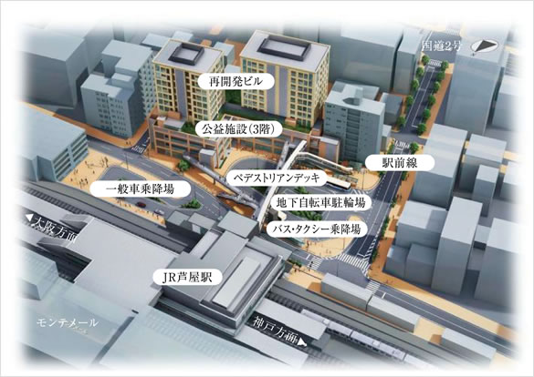 ※1.掲載の再開発事業の完成時期・内容等は変更となる場合があります。本事業は芦屋市が推進する事業であり、和田興産(株)が推進するものではございません。 (芦屋市都市政策部都市基盤室都市整備課都市整備係 出典)