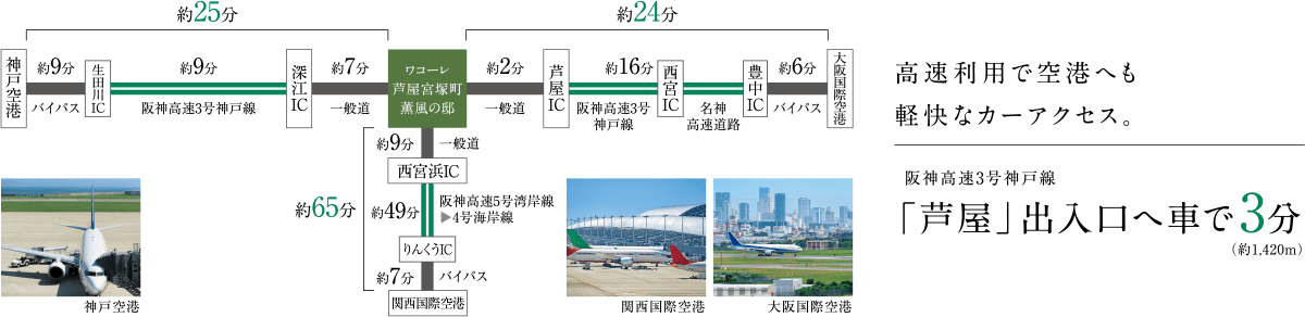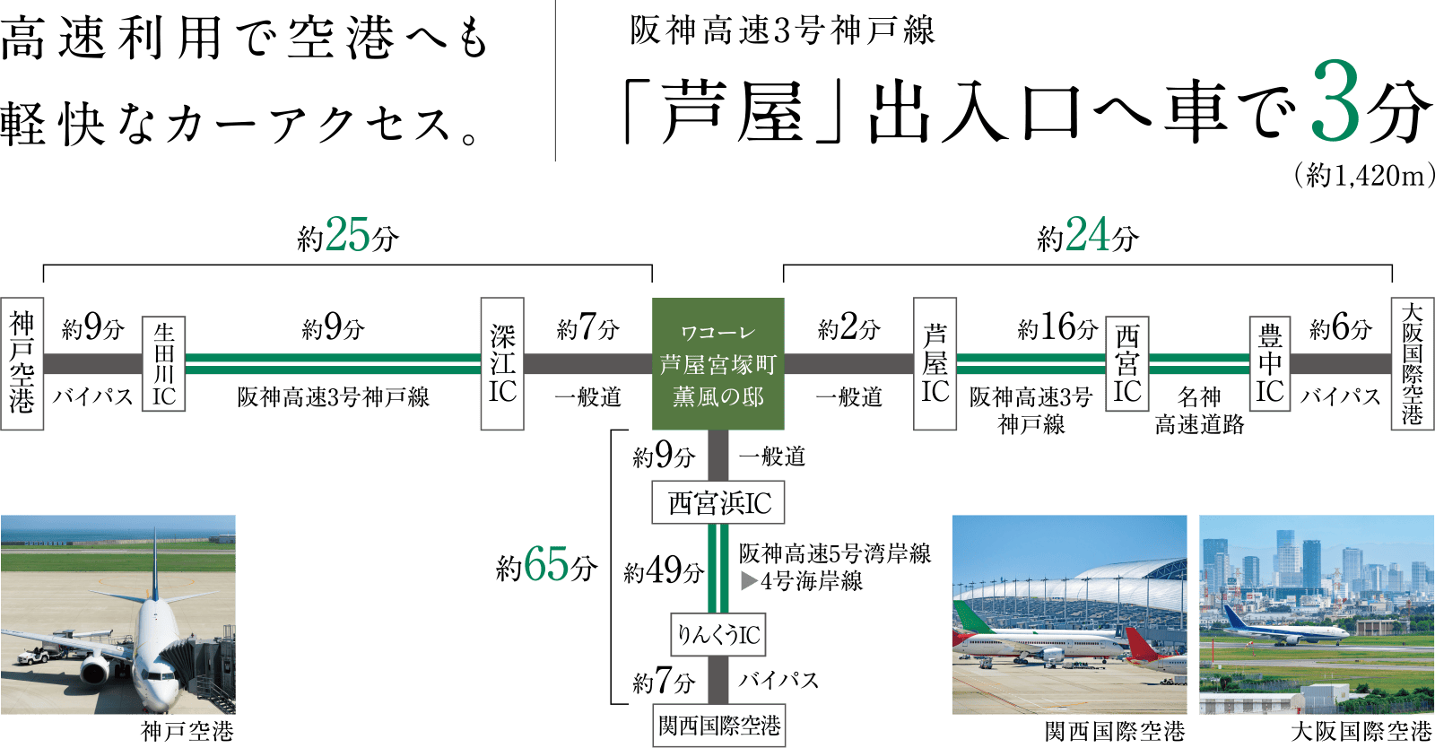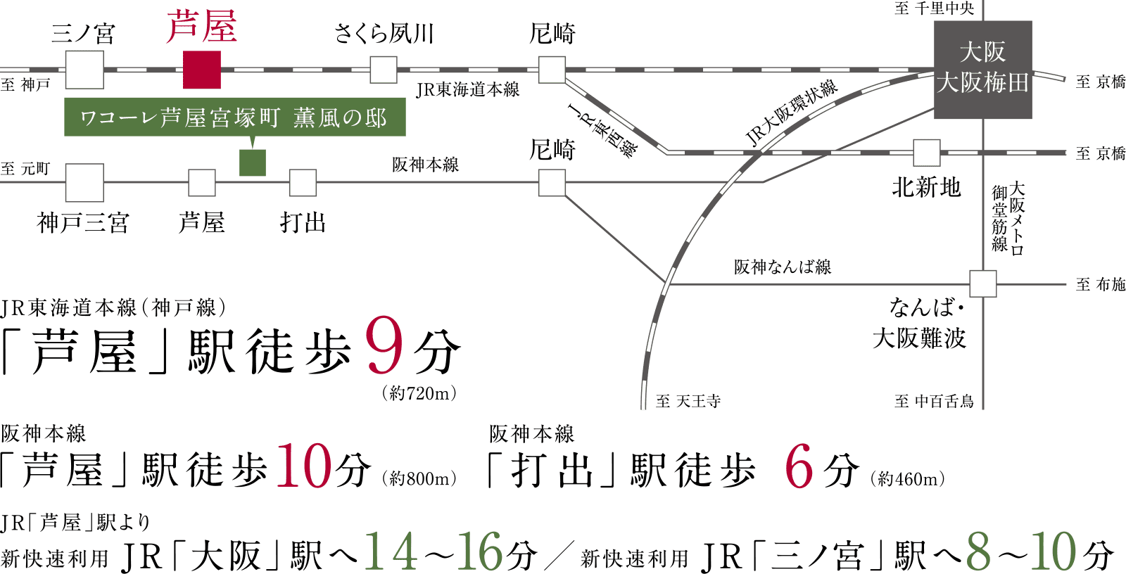 大阪、三ノ宮、東西の都心へのダイレクトアクセスがスピーディな
