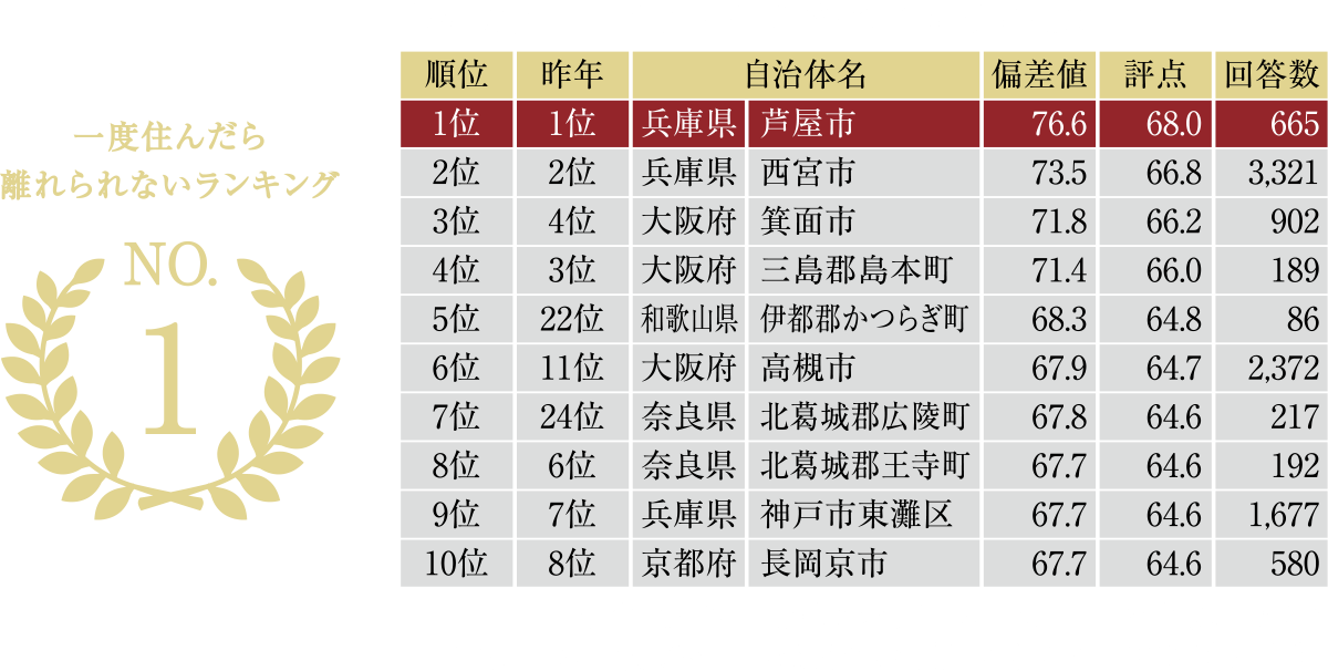 関西一円にわたる「住み続けたい街」ランキングにおいても4年連続No.1を獲得。