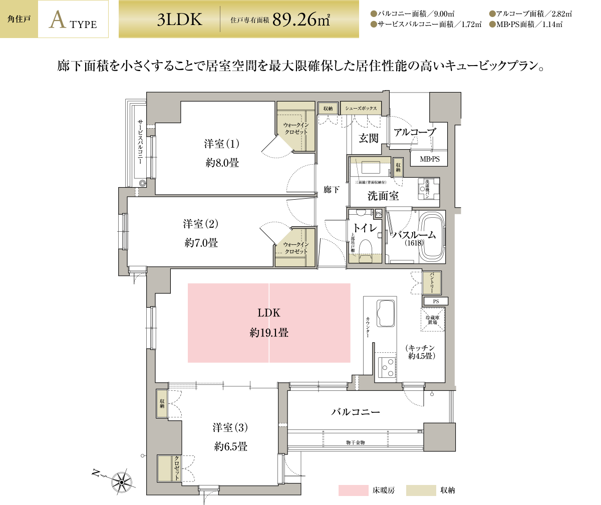 ※掲載の間取りは、設計段階の図面を基に描き起こしたもので、官公庁の指導、施工上の都合等により多少変更となる場合がございます。あらかじめご了承ください。