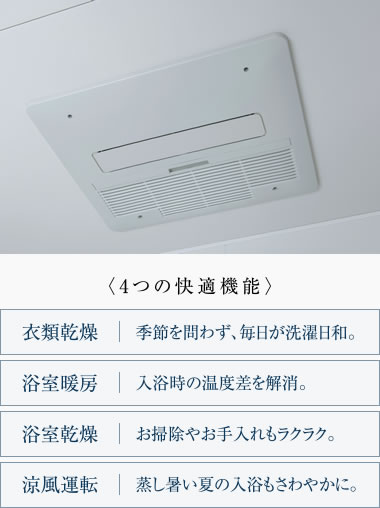 衣類・浴室乾燥、浴室暖房、換気、涼風機能がついた浴室暖房乾燥機です。