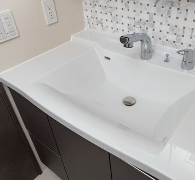 汚れにくくキズつきにくい人造大理石一体型カウンターを採用しました。上質な素材感で、お手入れも簡単です。