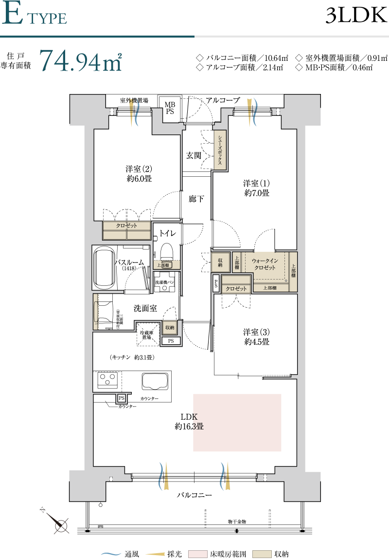※掲載の間取りは、設計段階の図面を基に描き起こしたもので、官公庁の指導、施工上の都合等により多少変更となる場合がございます。あらかじめご了承ください。