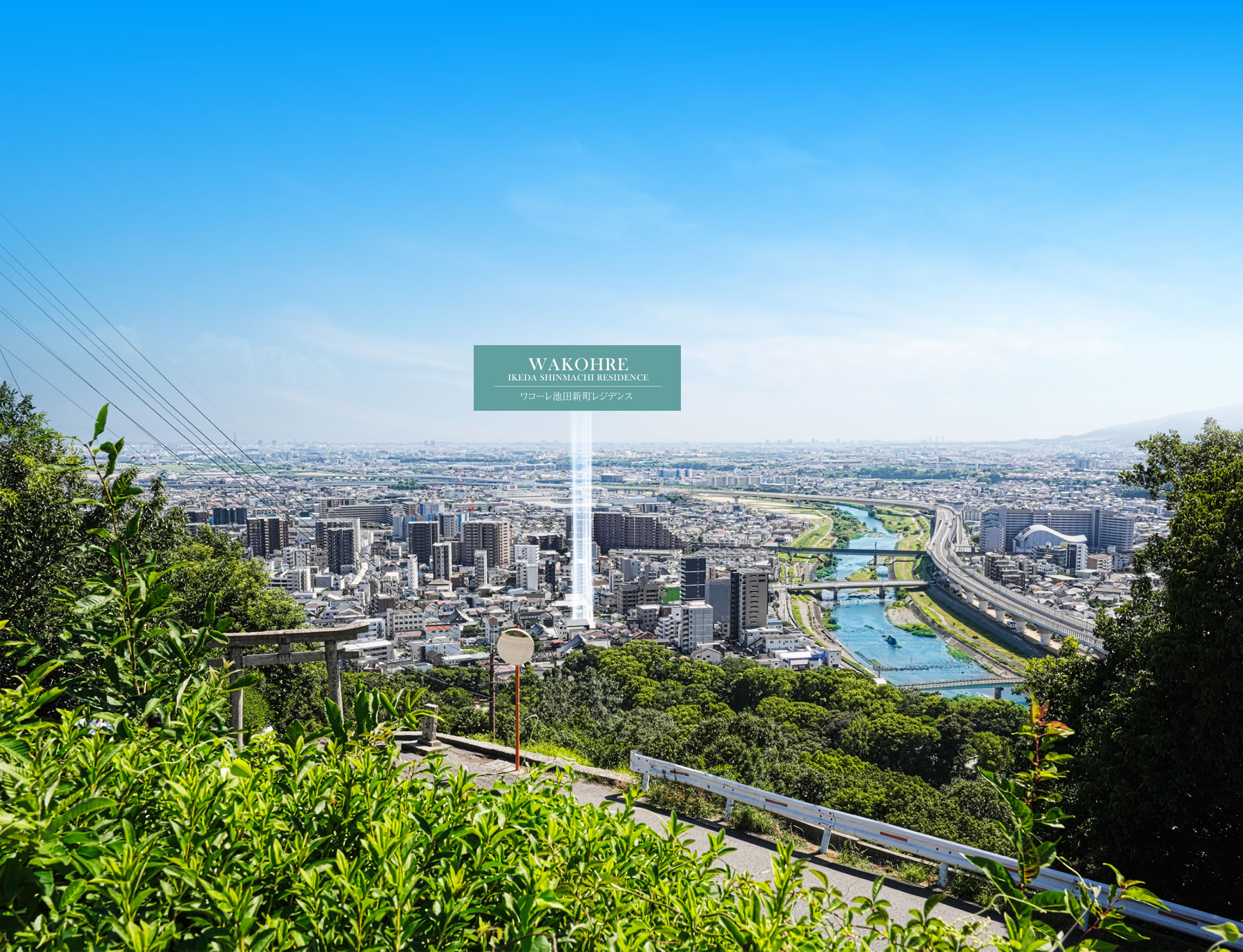 「五月山」の豊かな緑、春には桜咲く「池田城跡公園」、そして清流「猪名川」沿いの麗しい風景。