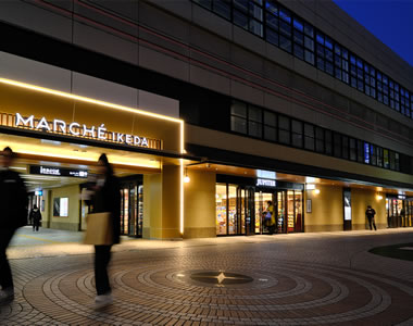 「池田」駅直結の「マルシェ池田」は、程よいお出迎え感があり、誰もが気兼ねなく過ごせて、親しみが感じられる、そんな、街に開かれたショッピングモールです。