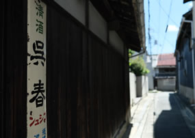 「呉春」や「吉田酒造」など、昔ながらの風合いのある老舗蔵があり、酒造りの伝統と職人の気配がふんわりと漂います。