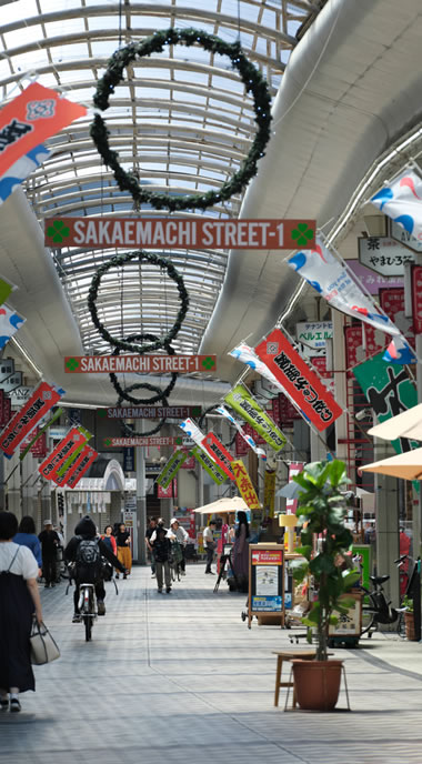 毎日のお買い物は、多彩な商店が集まる「サカエマチ商店街」や
