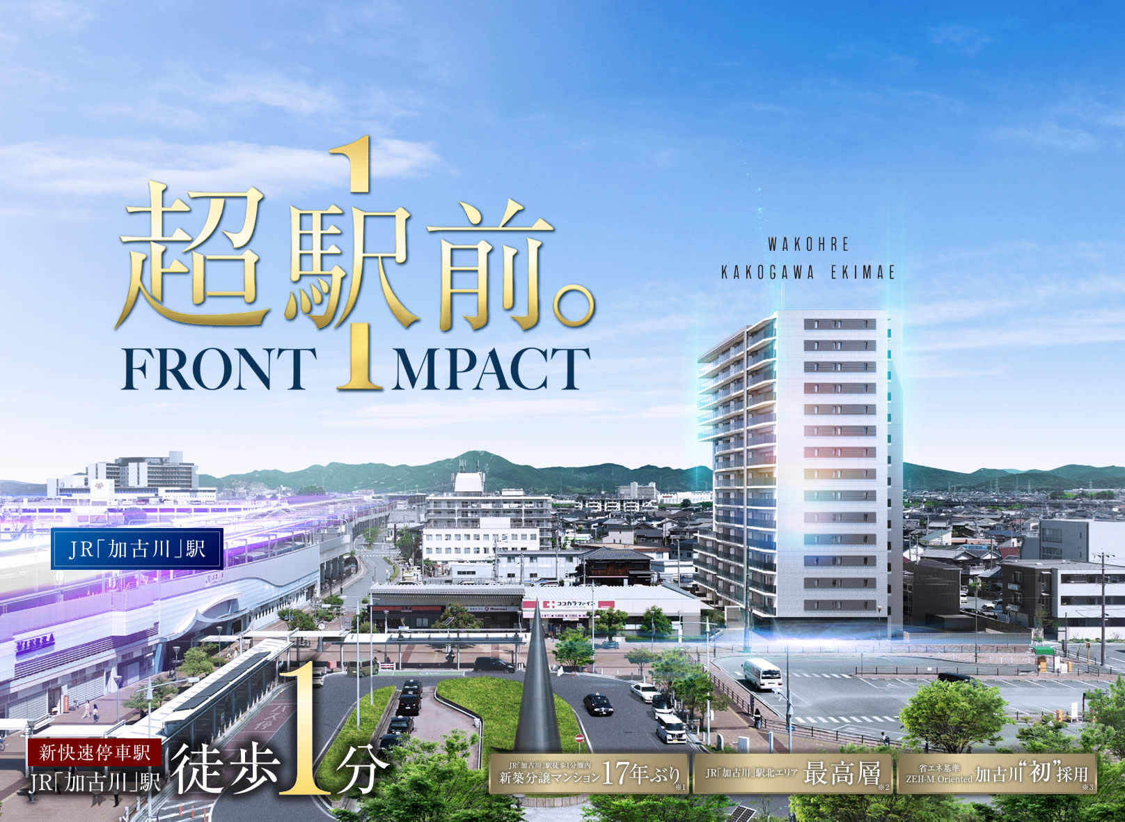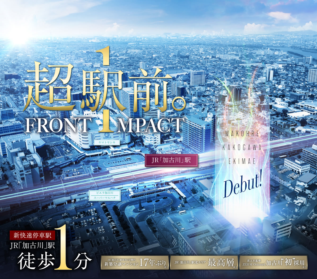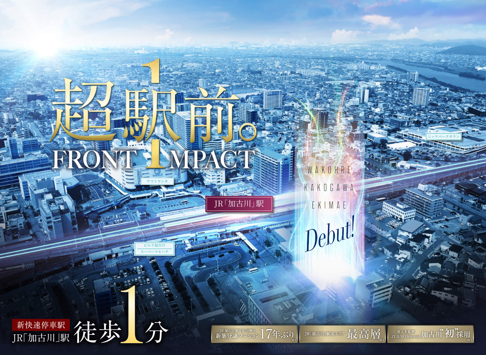 新快速停車駅のJR「加古川」駅徒歩1分の駅前立地。