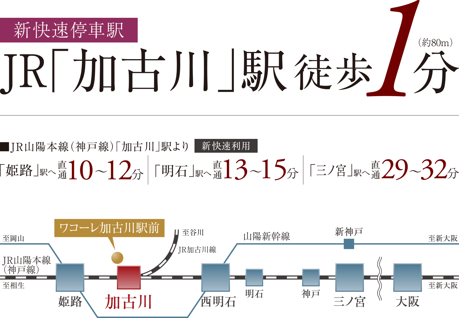 ※記載の電車所要時間は朝の通勤ラッシュ時(7:00~9:00)のもので、発車駅から到着駅までに要する最短~最長の時間(新快速利用)を記載しており、曜日・時間帯等により異なります。(2025年6月ジョルダン調べ)