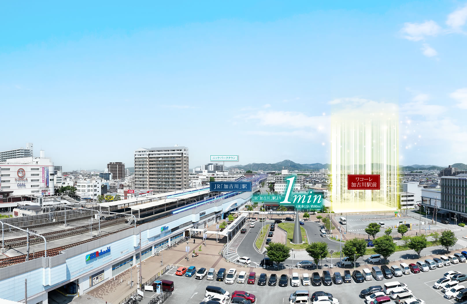 ※掲載の航空写真は2025年6月に撮影したものに、CG加工を施したものです。また光の柱は本物件の位置を示すものであり、建物の高さや規模を示すものではありません。あらかじめご了承ください。