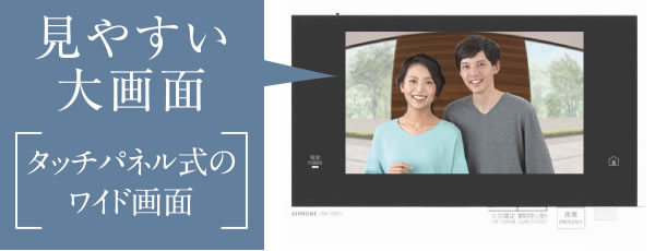 共用エントランス・玄関前の来訪者を、カラー映像と音声で確認可能。便利なハンズフリータイプです。