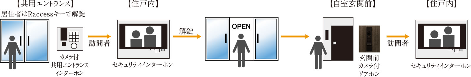 共用エントランスのインターホン、管理事務室(駐在時)からの呼び出しに対する通話機能を搭載。火災・侵入・非常通報等の異常信号を受信する機能も備えています。