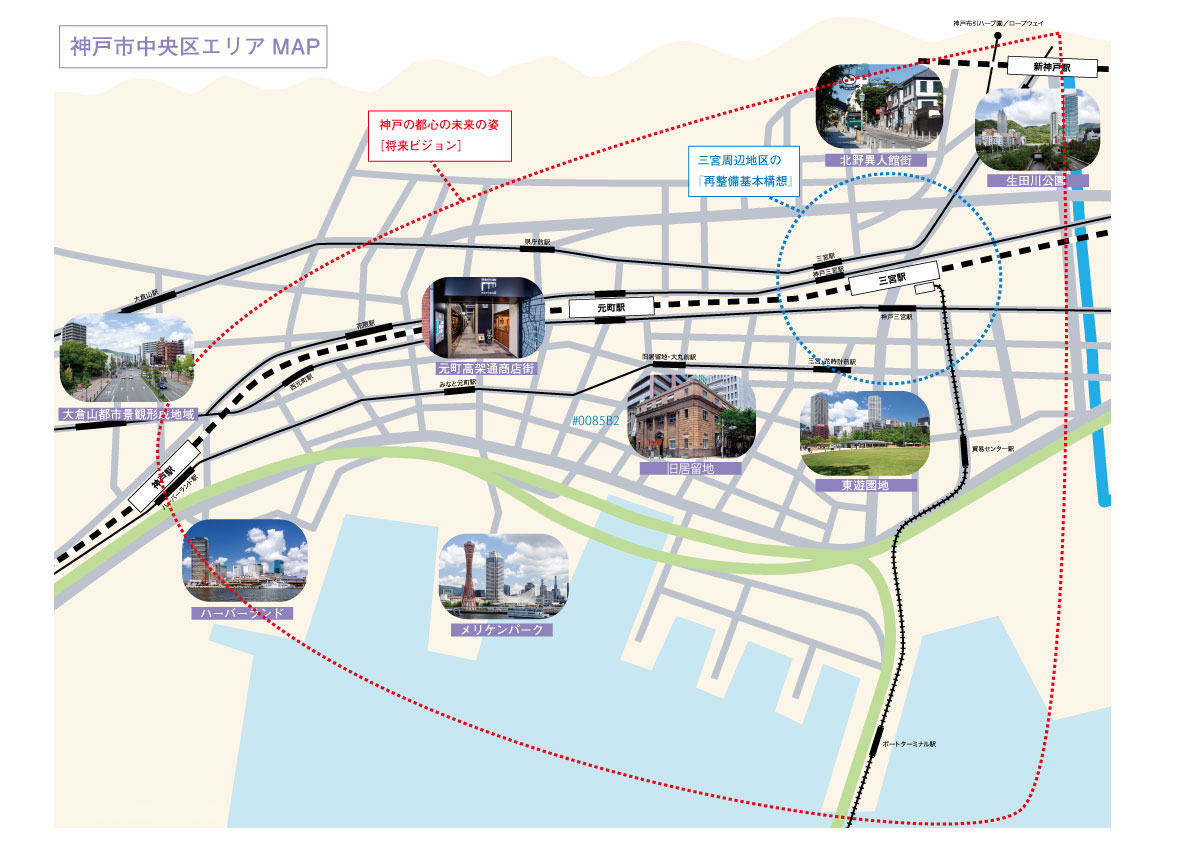 ビジネス・商業の中心地である「三宮駅周辺エリア」の新たなにぎわいを創出する取り組みを紹介するとともに、当社が注目する「元町・神戸駅周辺エリア」の魅力をお伝えします。