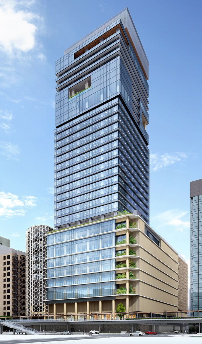 都心部の交通ターミナルである三宮周辺地区内には、JR、阪急電鉄、阪神電鉄、市営地下鉄の西神・山手線と海岸線、ポートライナーという6路線の鉄道と多数のバス路線が乗り入れています。しかし、各駅の改札が地下・地上・デッキの3層に分かれ、中・長距離バスと路線バスの乗降場も地上に分散しているため、乗り換え動線が複雑で分かりづらいという課題がありました。これに対し、2027年度以降に新たな歩行者デッキを整備。路線の乗り換えが円滑になるほか、三宮クロススクエアと合わせて駅前エリアのにぎわいが創出されます。また、現状複数か所に分散している中・長距離バス乗降場がJR三ノ宮駅東側に建設予定のツインタワービルに集約されます。約1700便が運行する西日本最大級のバスターミナルが誕生し、2028年度に一部運用を開始予定。歩行者デッキとも連結し、公共交通がひとつの駅にまとまるような空間が生み出されます。神戸の公共交通の要衝としての機能がさらに高まり、利便性が大幅に向上することが期待されています。