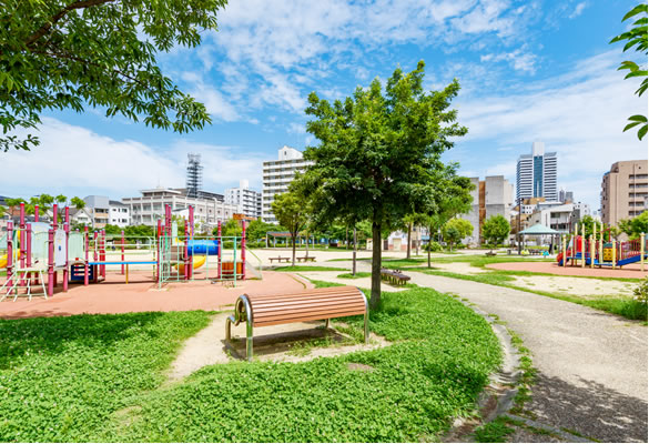 徒歩3分の「細田町公園」をはじめ「水笠通公園」など緑の潤い豊かな公園が周辺に点在しています。