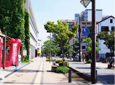 北側は駅周辺の商業ゾーンに近いながらも、景観形成市民協定「いえなみ基準」に基づき、