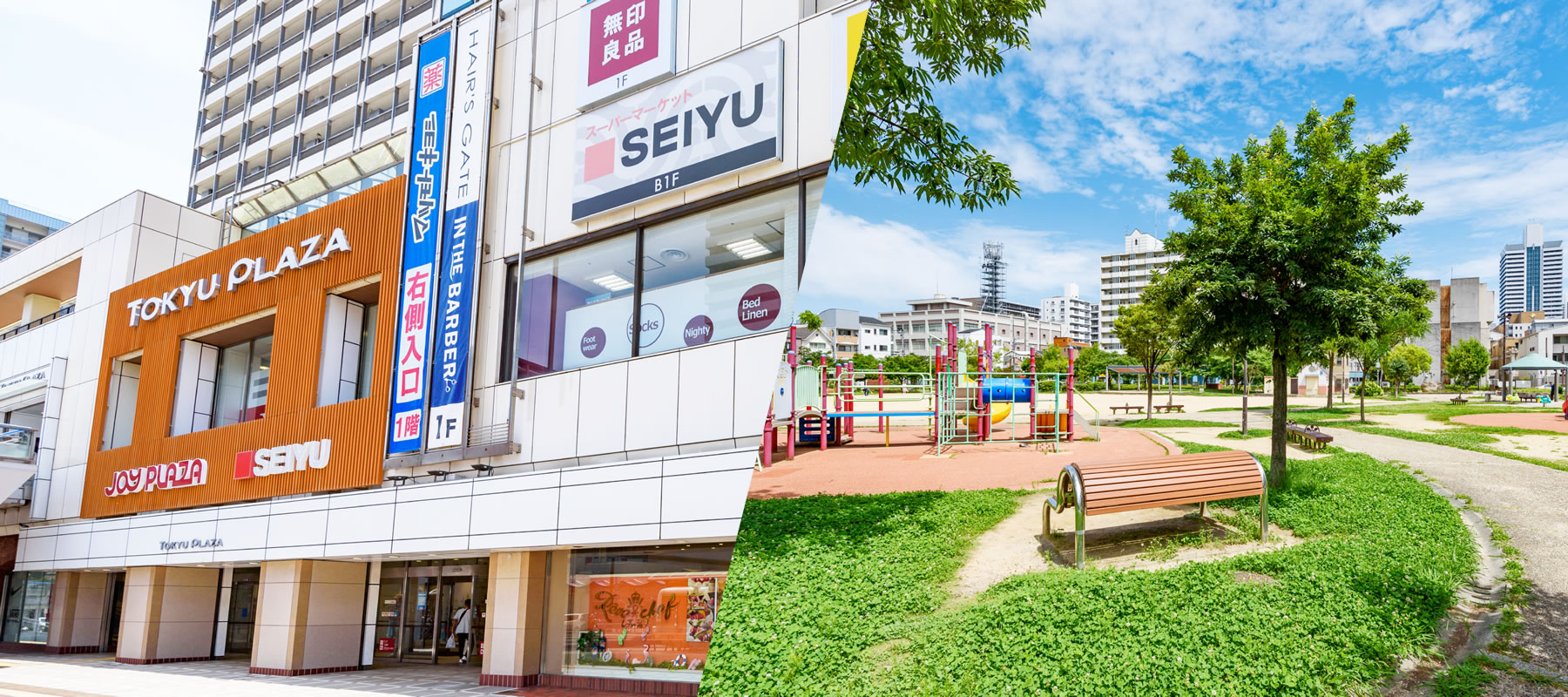 SEIYUやファッション・インテリア・書店・グルメなど各種専門店が集まる「東急プラザ新長田」をはじめ「ピフレ新長田」などの大型商業施設が身近。