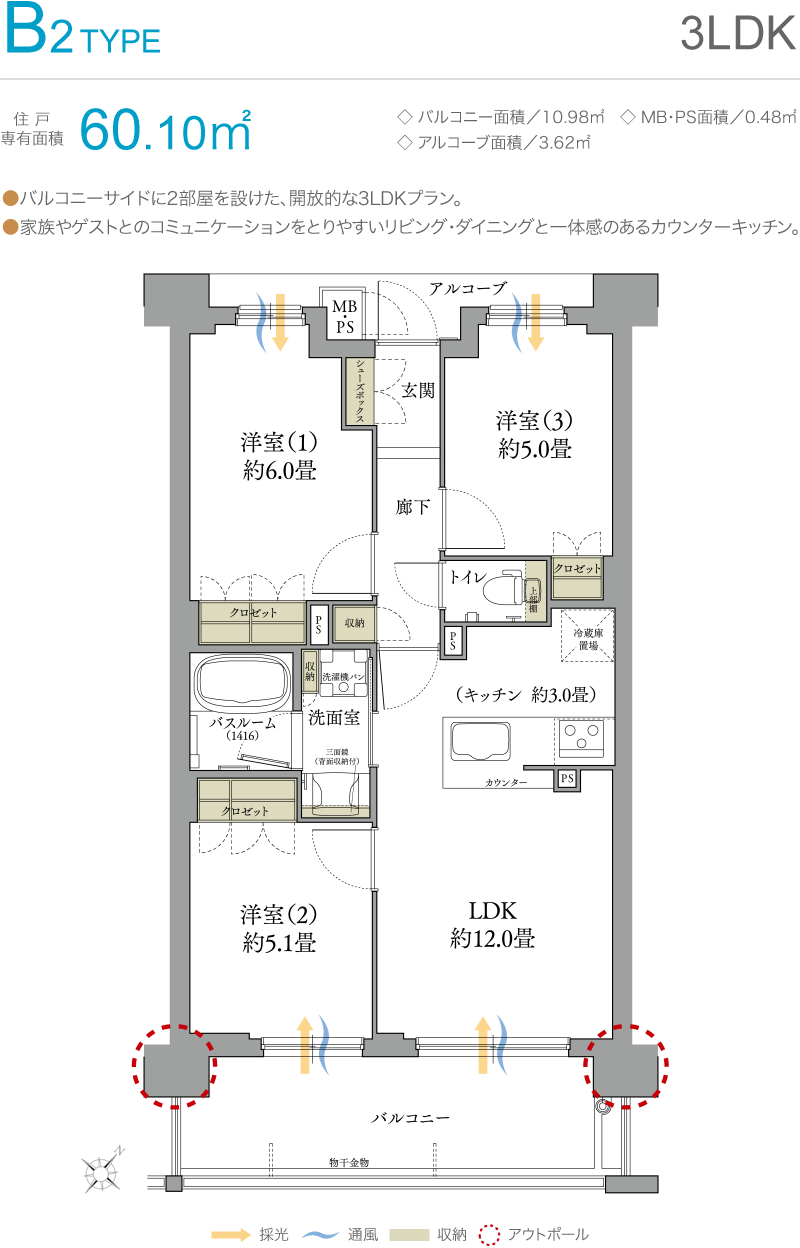 全邸南東向きの間取り