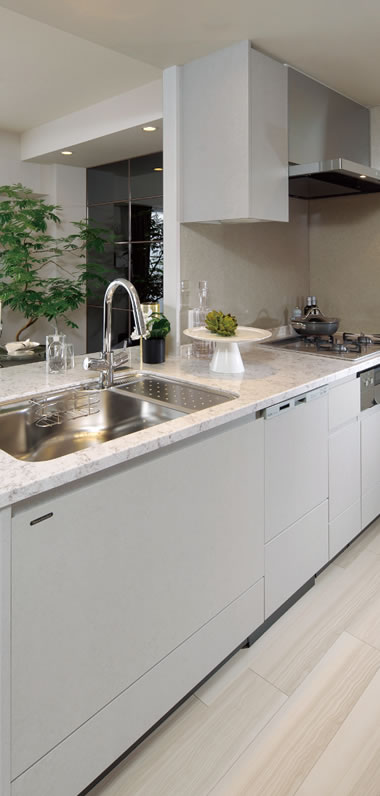 キッチンで発生した生ゴミをシンク下に設置した機械で破砕。簡単な操作で清潔なキッチン環境とエコを両立します。※一部処理ができないものがございます。詳しくは係員にお問い合わせください。