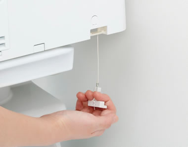 便器に向かって右横奥の手動レバーを引っ張ることで、停電時も水を流すことができます。
