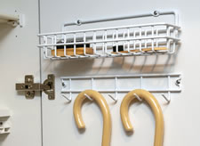 トールタイプのシューズボックスは、ご家族の靴はもちろん、傘立てや印鑑などの小物を収納するのに便利な回転トレー、ローラーバスケット、ステンレスフック、扉裏ミラーなどを標準装備しています。※タイプにより仕様が異なります。