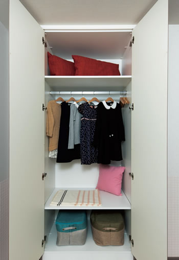 ハンガーパイプと上部棚をセットした機能的なクロゼット。身のまわりのアイテムをすっきりと収納できます。※タイプ・居室により仕様が異なります。