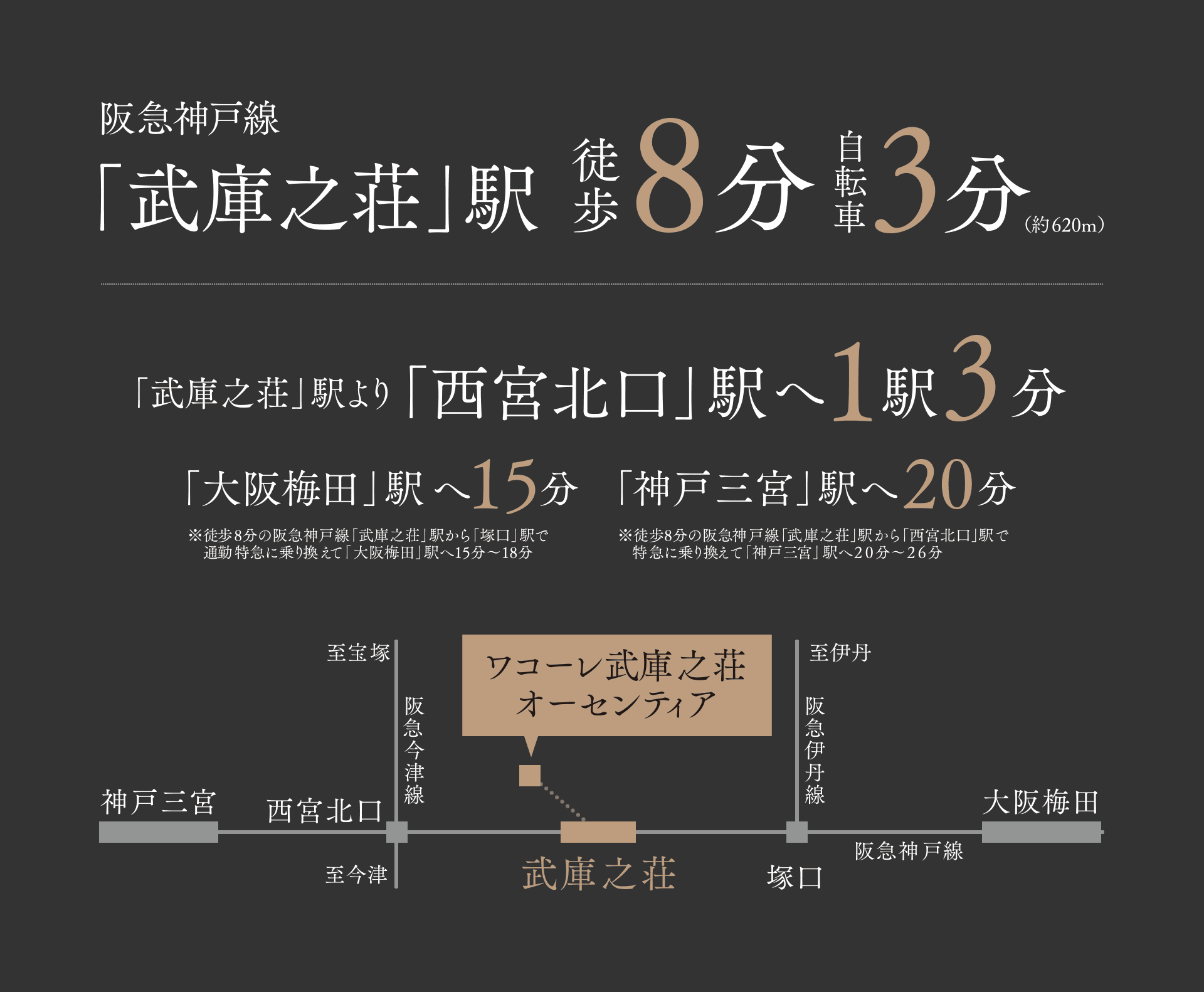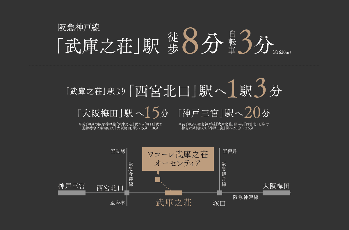 ※距離表示は現地からの地図上での概測距離です。※掲載の交通所要時間は通勤時のもので、曜日・時間帯(7:00〜9:00)により多少異なる場合がございます。また、乗り換え・待ち時間は含まれております。(2024年11月現在)