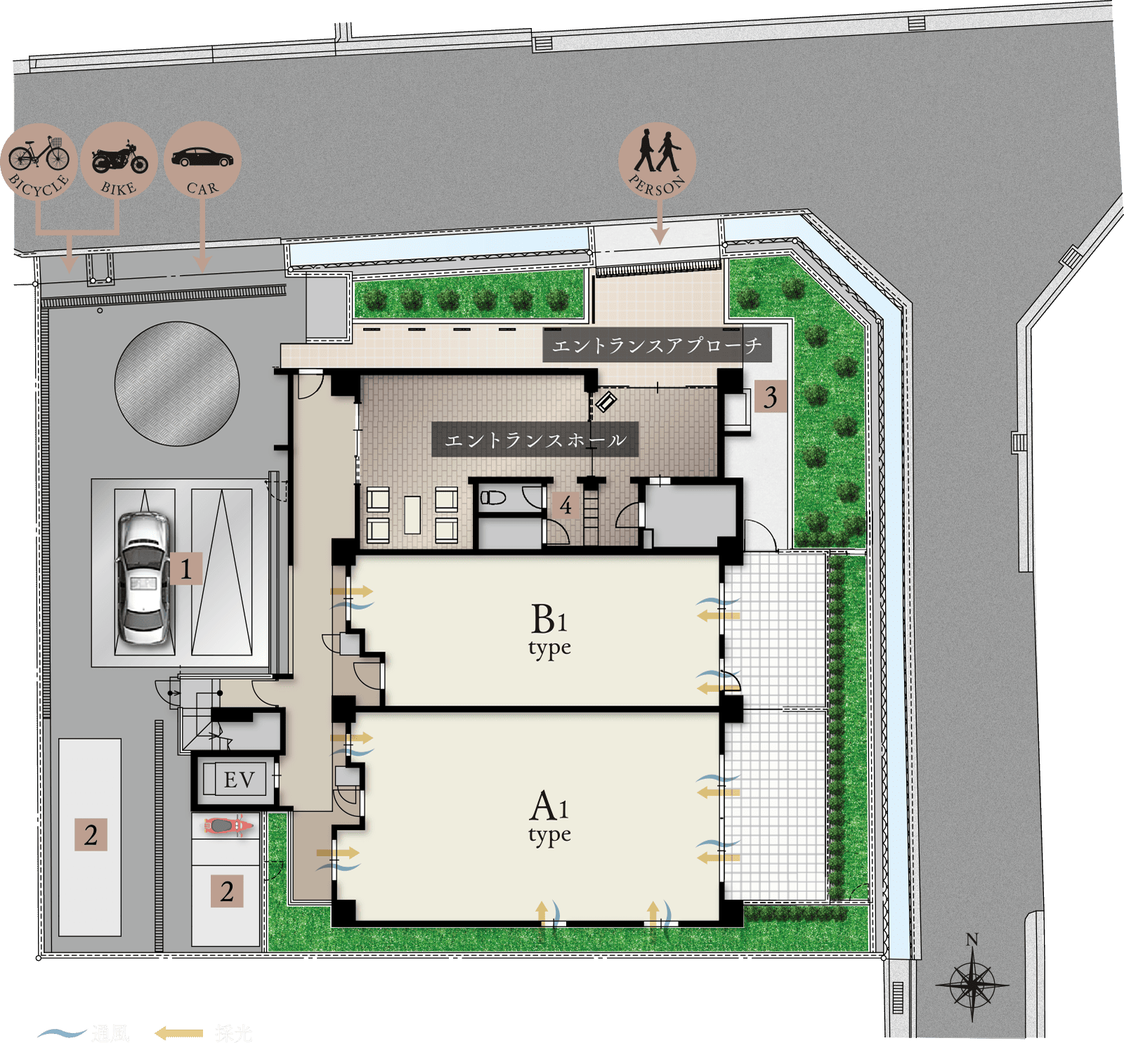 自転車置場を24台分(平置:4台)、ミニバイク置場を2台分ご用意しております。