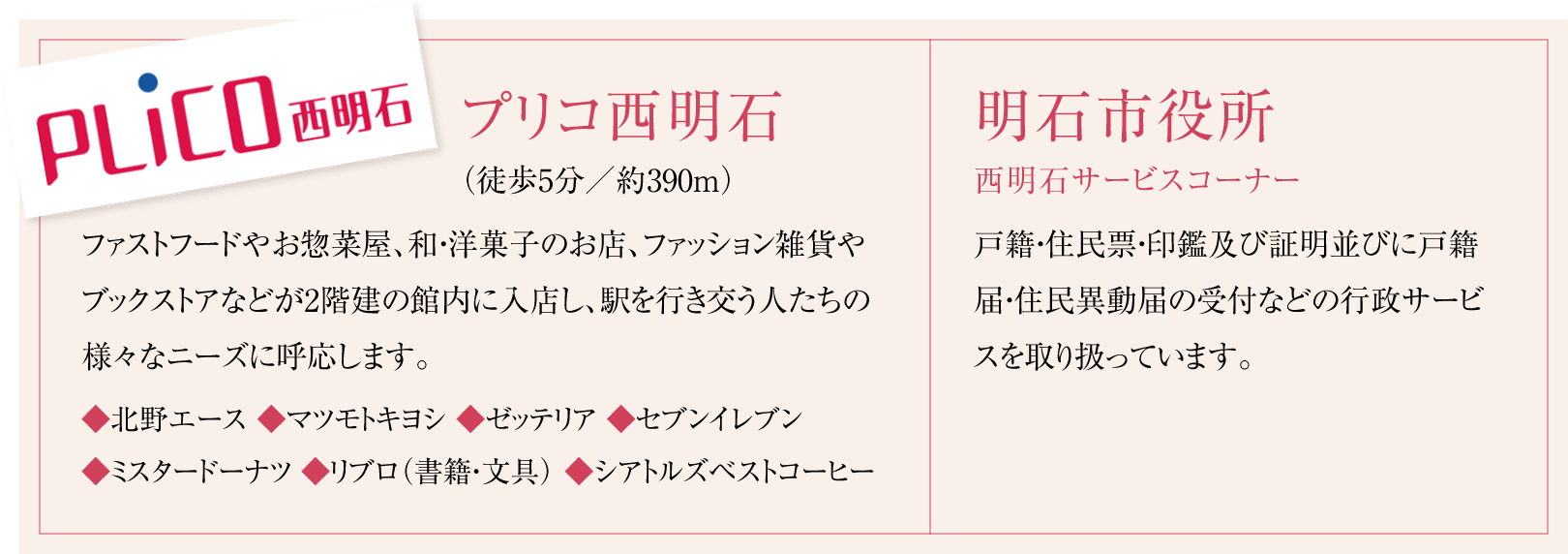 さらに各種行政サービスを取り扱う「明石市役所西明石サービスコーナー」も併設するなど、地域住民の暮らしをサポートします。
