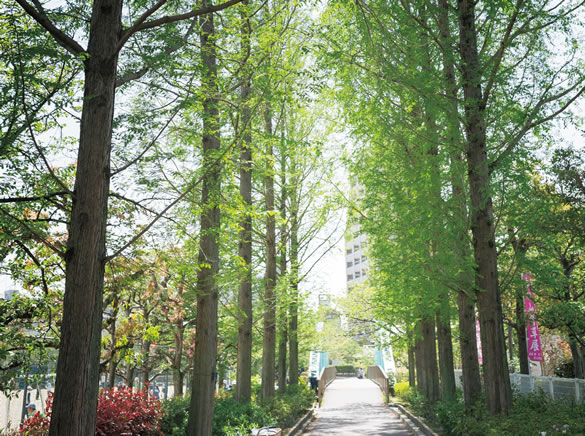 北側には、駅前の都市風景から成熟した住宅地へと連なる、