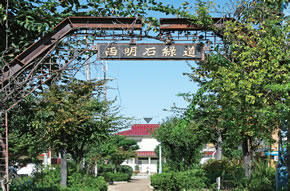 現地近くの、広いグラウンドを有した「上ヶ池公園」から穏やかな住宅地の中を北へ伸びる「西明石緑道」。