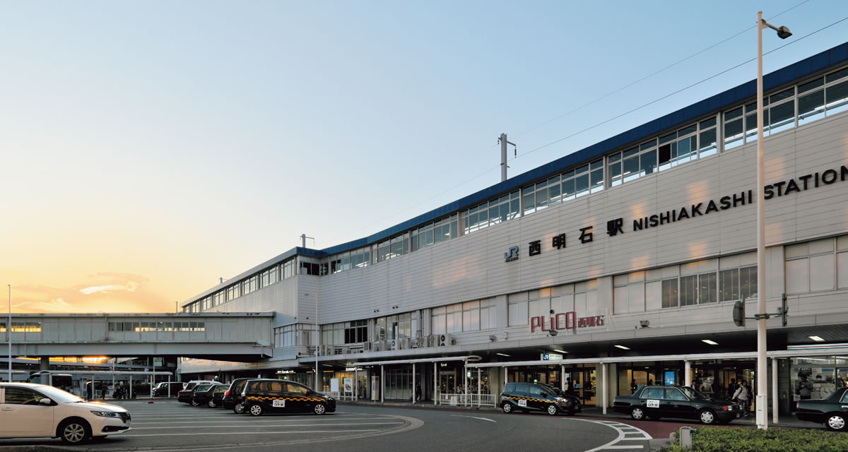 JR神戸線と新幹線が交差し、近隣都市から日本全国へ軽快につながる「西明石」駅。