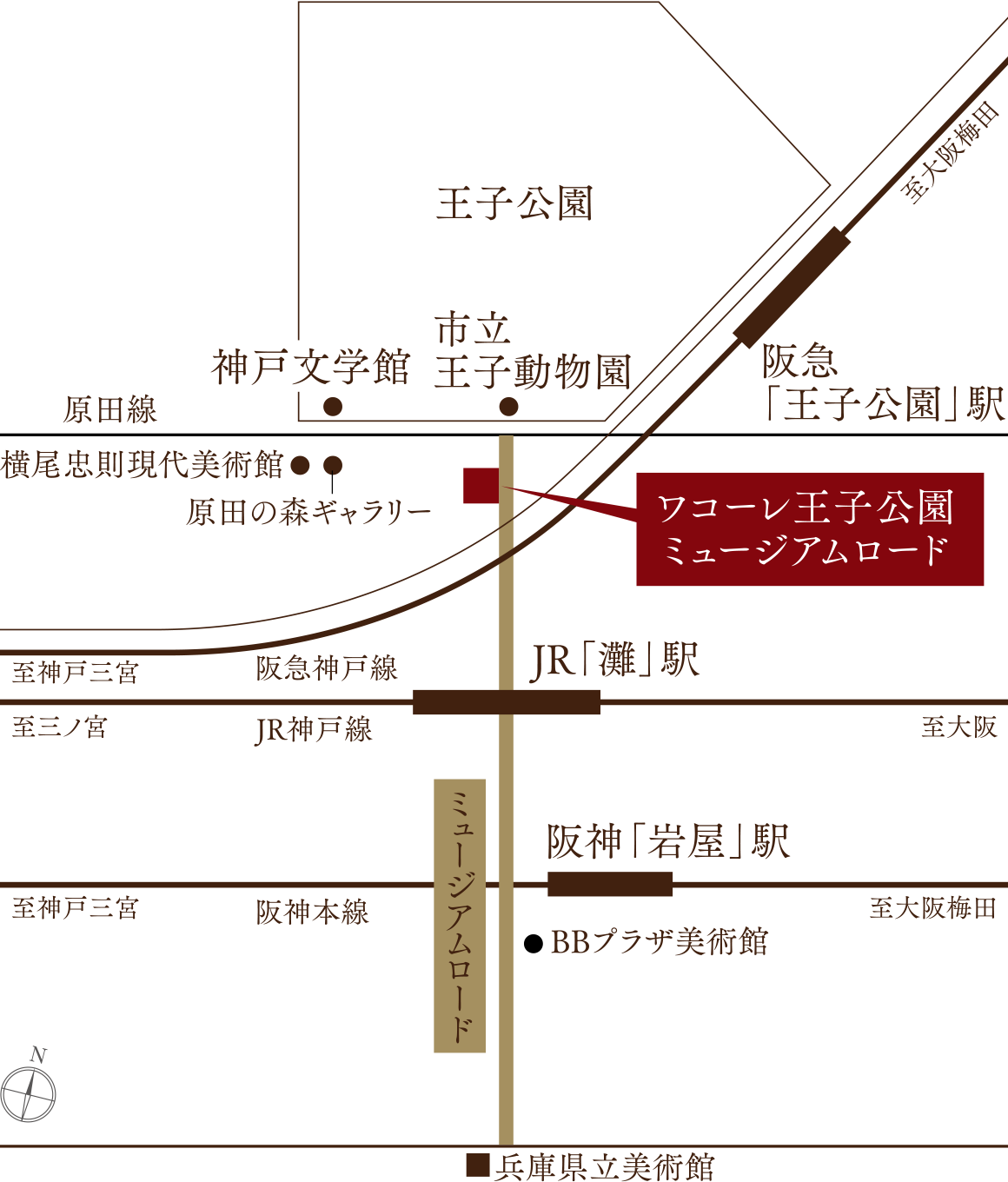 兵庫県立美術館から続く文化軸ミュージアムロード沿いに広がるこのエリアは、日常のなかでアートに触れられる贅沢なロケーション。現地はその通りに面し、横尾忠則現代美術館や原田の森ギャラリーなどが徒歩圏内に。企画展や公募展、トークイベントが通年で開催され、芸術に気軽に触れ合うことができます。街角には彫刻やモニュメントの屋外アートも配され、散策するだけで感性が磨かれます。穏やかな住宅街の落ち着きも備え、散歩や子ども連れの美術館デビューにもぴったりです。また、カフェや個性豊かなショップも点在し、ひと息つきながら作品を巡るなど、気負わずアートを愉しむライフスタイルが似合うエリアです。四季折々の樹々と光とともに、芸術と文学が日常にも溶け込む、神戸の文化の香りに満ちています。