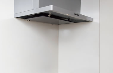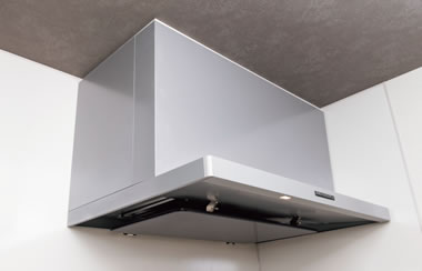 パワフルに煙や熱を吸引・排出するシロッコファン型のレンジフード。整流板はお手入れがスムーズな高品位のホーロー製です。