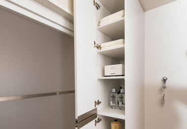タオル類や小物などを整理できる収納を設置。すっきりと整理された美しい洗面室を演出します。