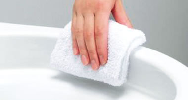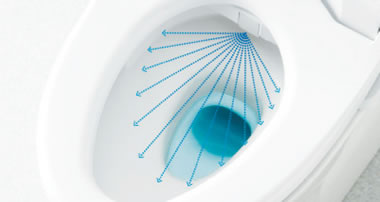 自動で便器にミスト(水)をふきつけて、汚れを付きにくく落ちやすくする技術です。