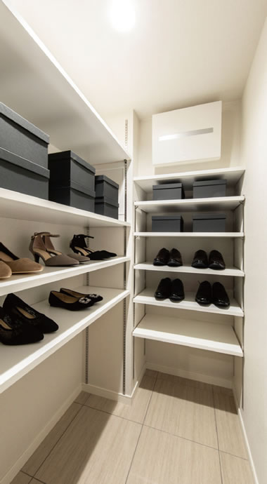 靴をはいたまま出入りできる機能的なシューズインクロークを設けました。※一部タイプのみ。