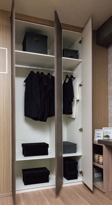 身のまわりのアイテムがすっきりと収納できる機能的なクロゼットです。※タイプ・居室により仕様が異なります。