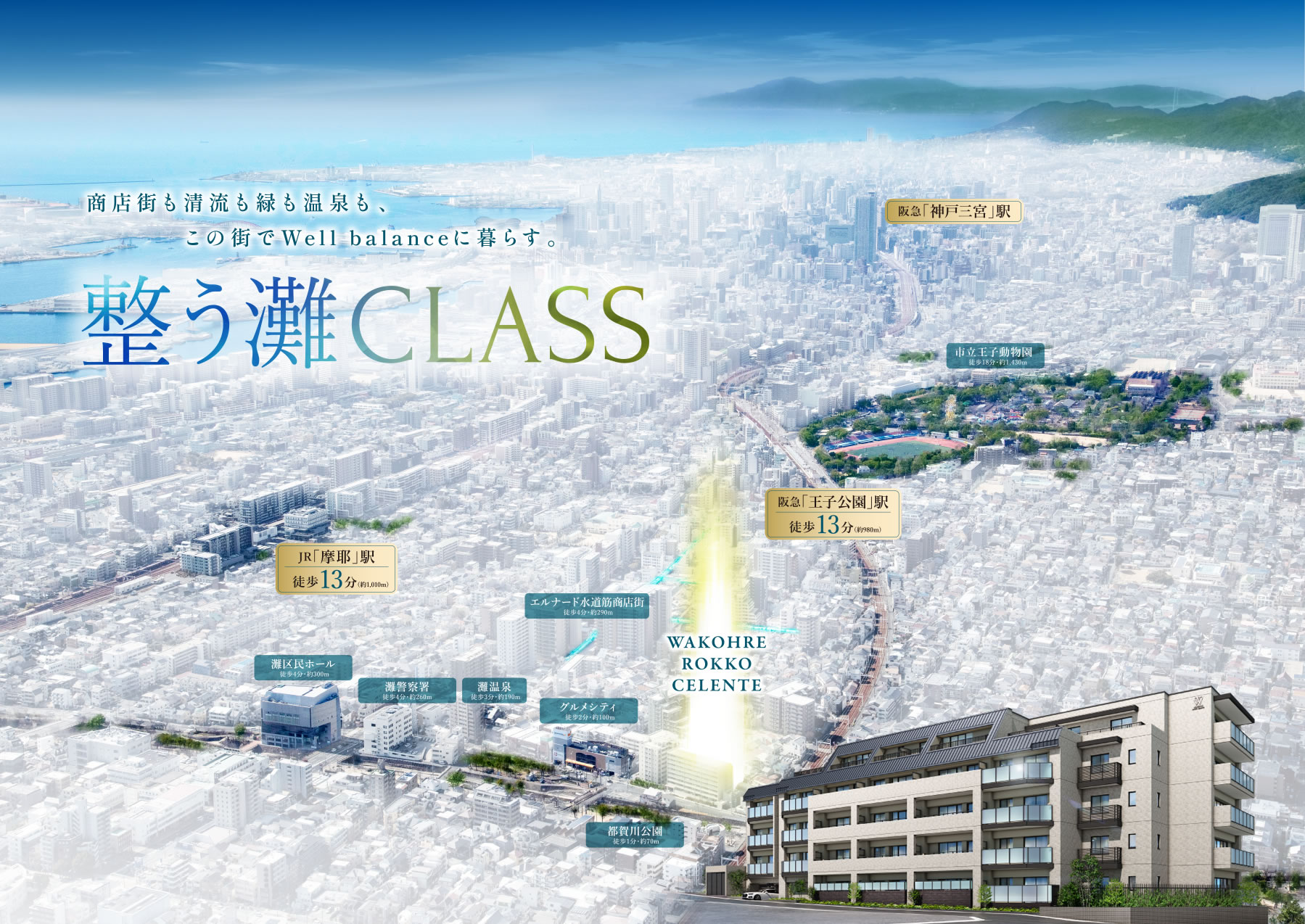 六甲と王子公園、2つの街の魅力を享受し自然にも寄り添う住環境。