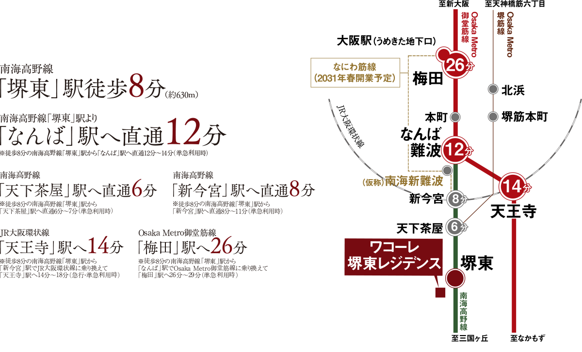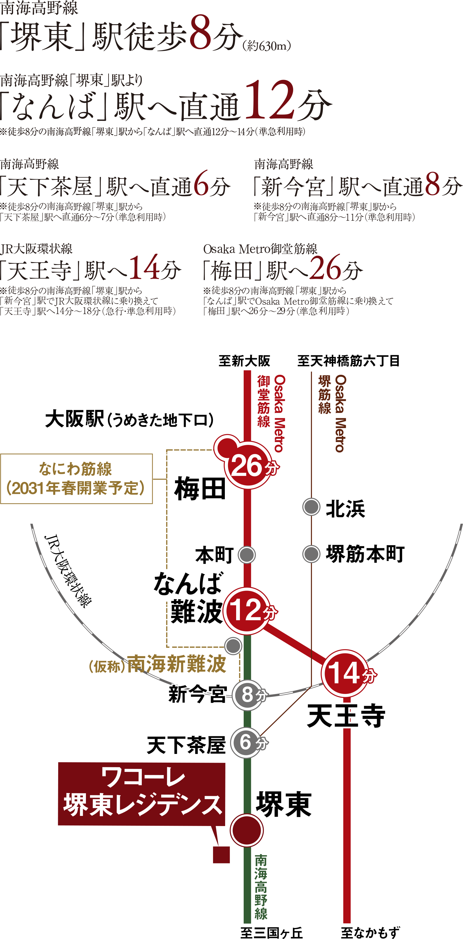 「なんば」駅へ直結12分。ONもOFFも思いのままに。
